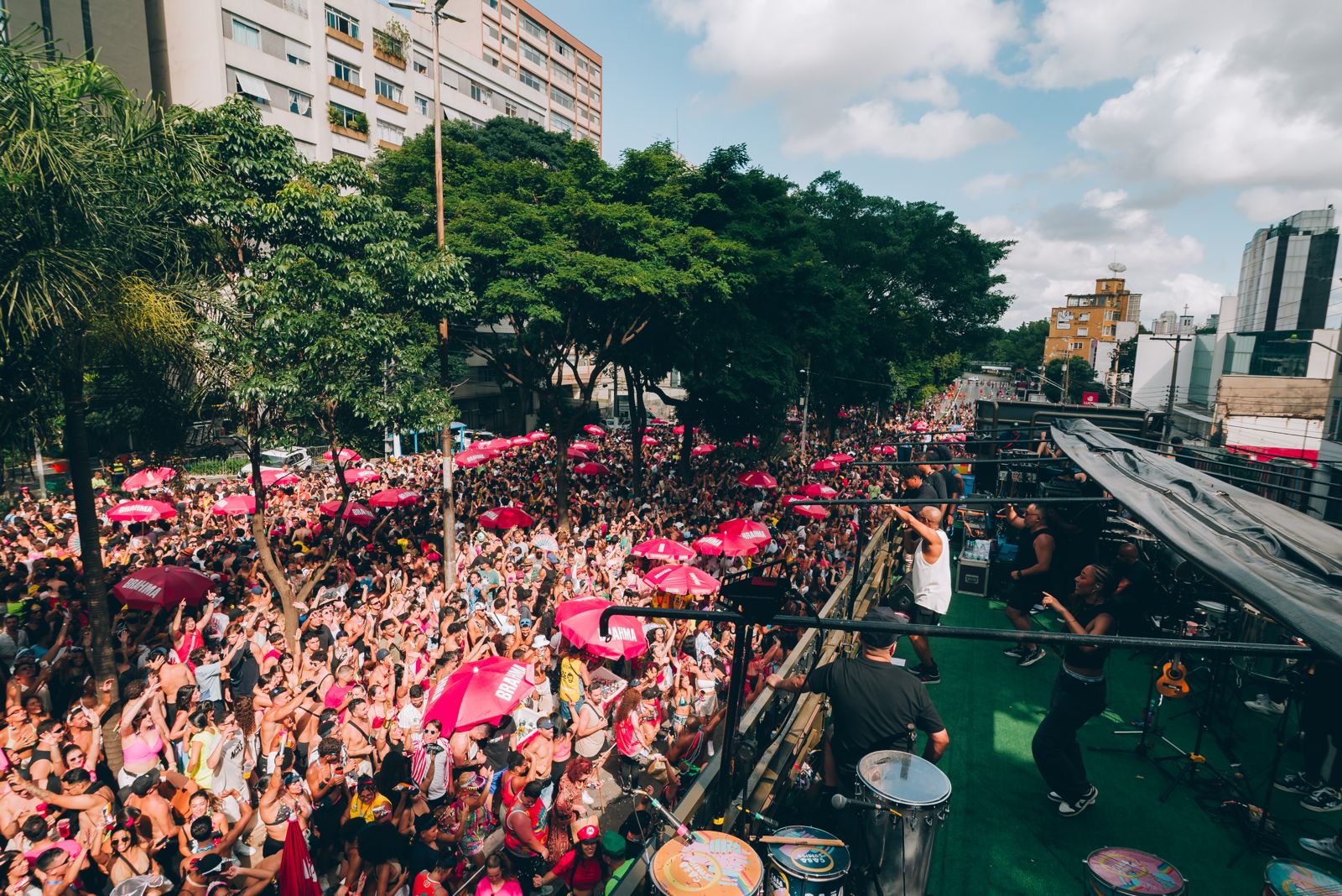 Para aquecer os foliões antes do grande dia, o bloco promoveu três ensaios gratuitos no Lote, na Vila Madalena, que deram um gostinho do que estava por vir e contaram com apresentações especiais conectadas ao tema deste ano.