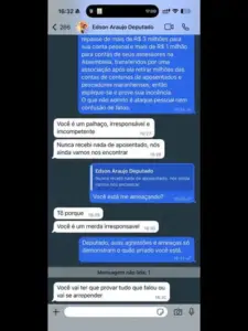 Logo após o depoimento, Duarte Jr afirmou ter recebido as mensagens de Edson Araújo via aplicativo. No diálogo, o deputado estadual teria dito: “Palhaçada. Quer aparecer. Lugar de palhaço é no circo”. Segundo Duarte, o tom das mensagens se tornou ameaçador quando Araújo escreveu: “Nós ainda vamos nos encontrar”. Ao ser questionado se estaria ameaçando o colega, ele teria respondido: “Estou. Por quê?”.