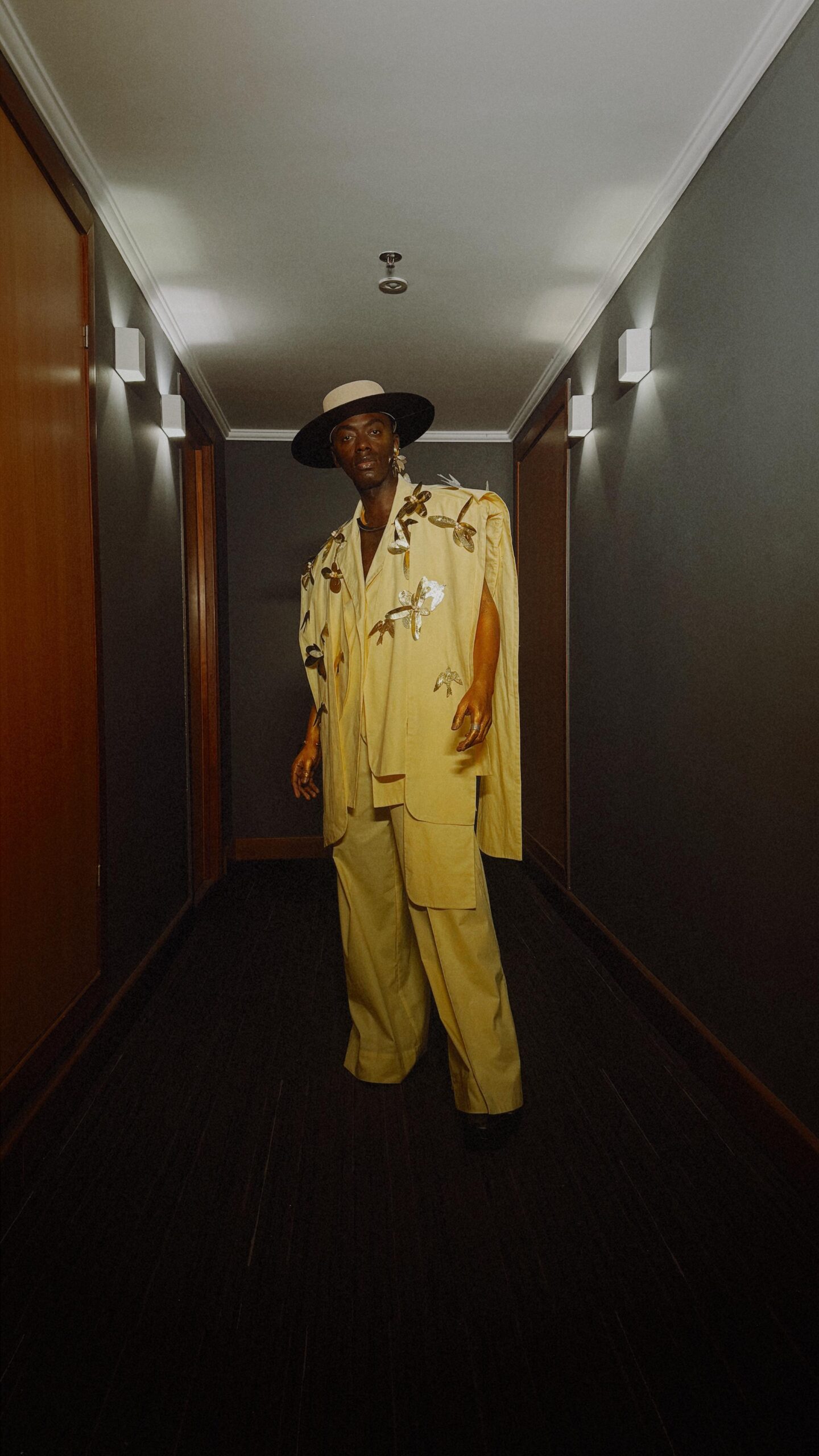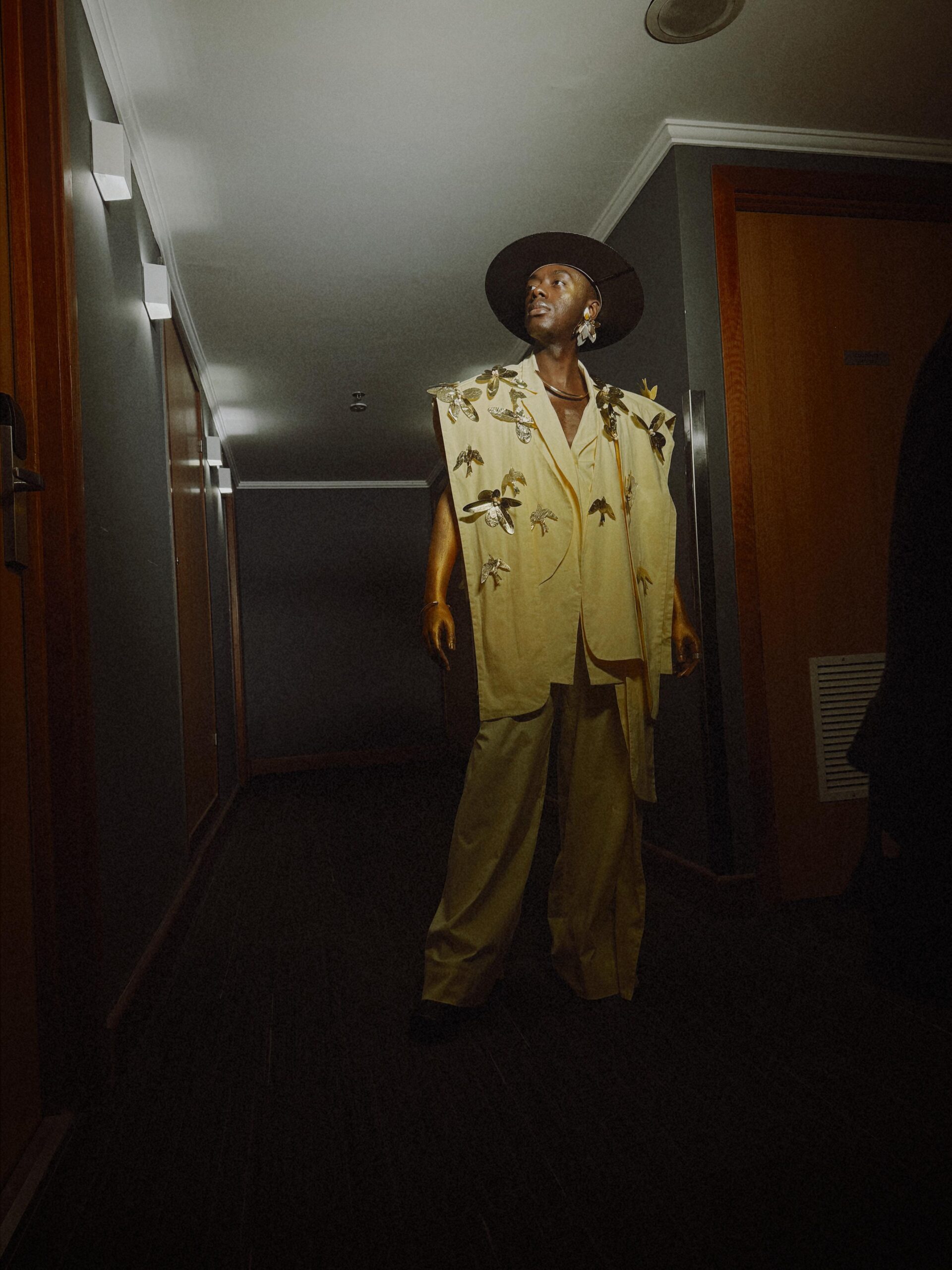 Inspirado no ícone Colman Domingo, o visual de Jota.pê também traz influências marcantes da era de Marvin Gaye e da sofisticação de Curtis Mayfield. Essa combinação de referências reforça não apenas o compromisso do artista com a inovação estética, mas também sua capacidade de traduzir a musicalidade e a história da moda em um único look arrebatador.