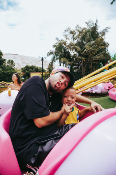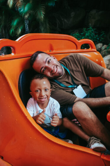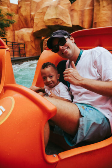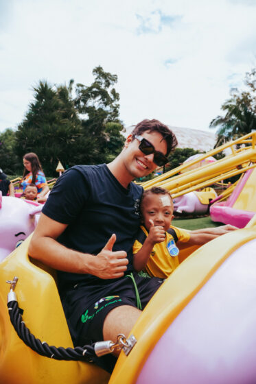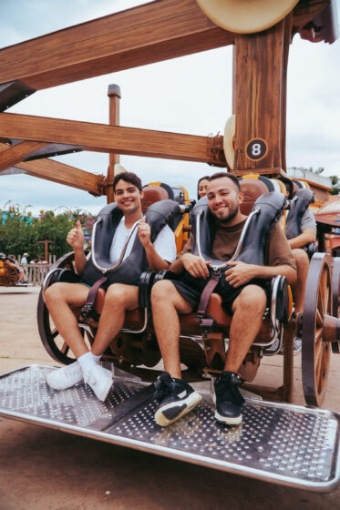 Lucas Rangel leva “filhos gêmeos” para um dia de diversão no Beto Carrero World